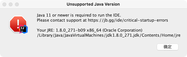 插件,然后将默认的 JetBrains Runtime 由 IDEA 自带 JDK 11 换成了我自己安装的 JDK1.8.0_271,然后……IDEA 就再也起不来了,启动就报如下这个错误: