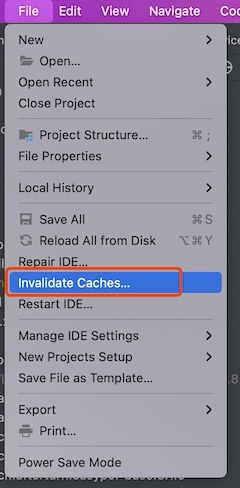 菜单项 File - Invalidate Caches。
